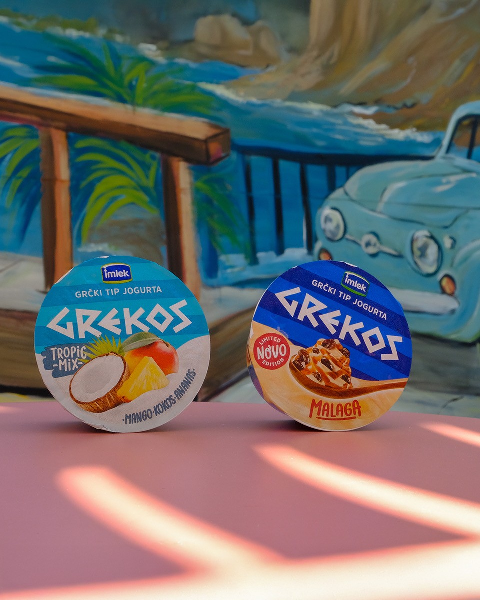 Грекос овошните јогурти доаѓаат во неколку освежителни вкусови: јагода, шумско овошје и кајсија – со вистински парчиња овошје и кремаст грчки јогурт што се одликува со природен вкус и богата текстура. Отсега може да уживате и во новите вкусови на Тропик микс и Малага кои се лимитирано издание за ова лето. Совршени се за ужина во движење, лесен појадок или вечерна доза свежина после оброк.