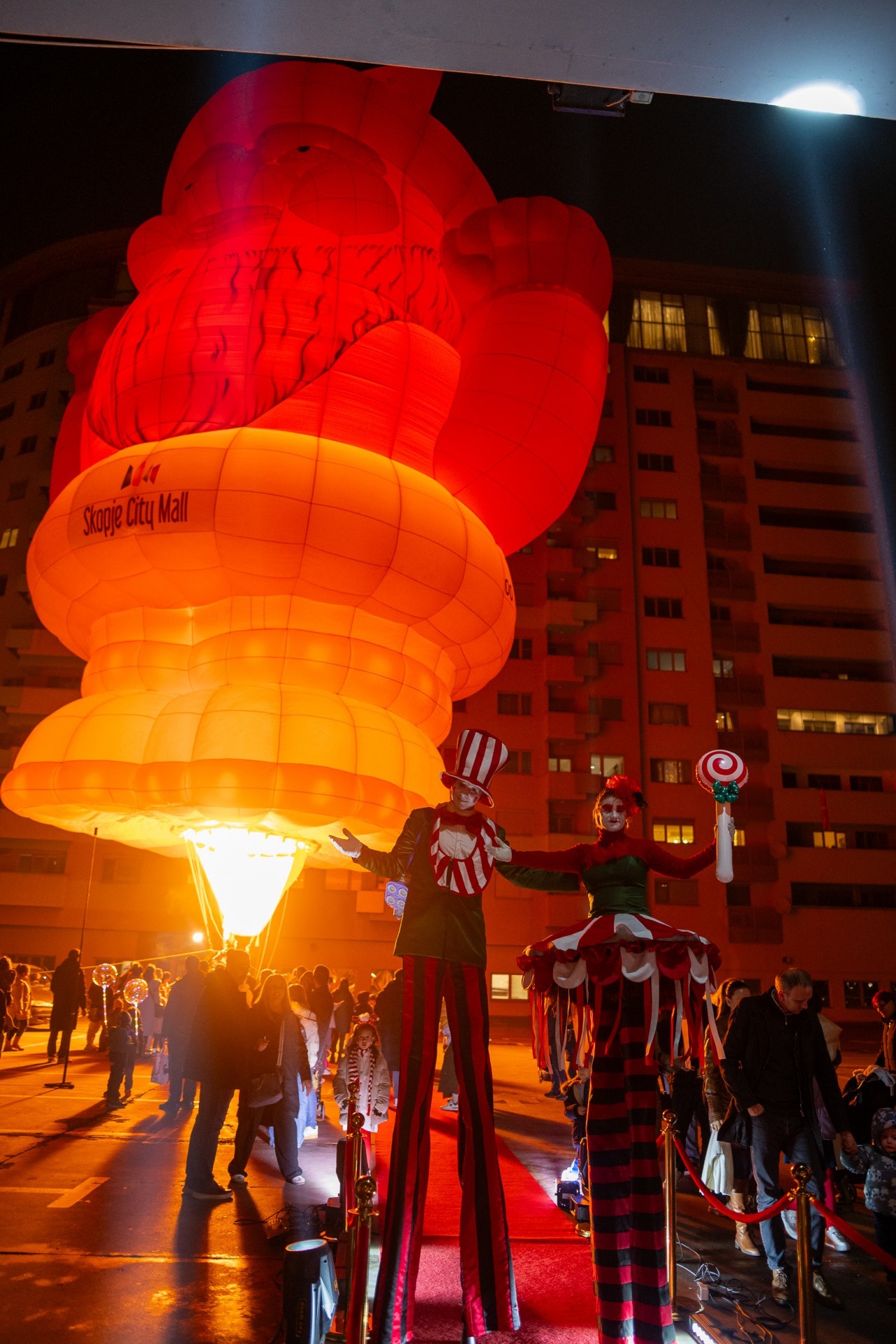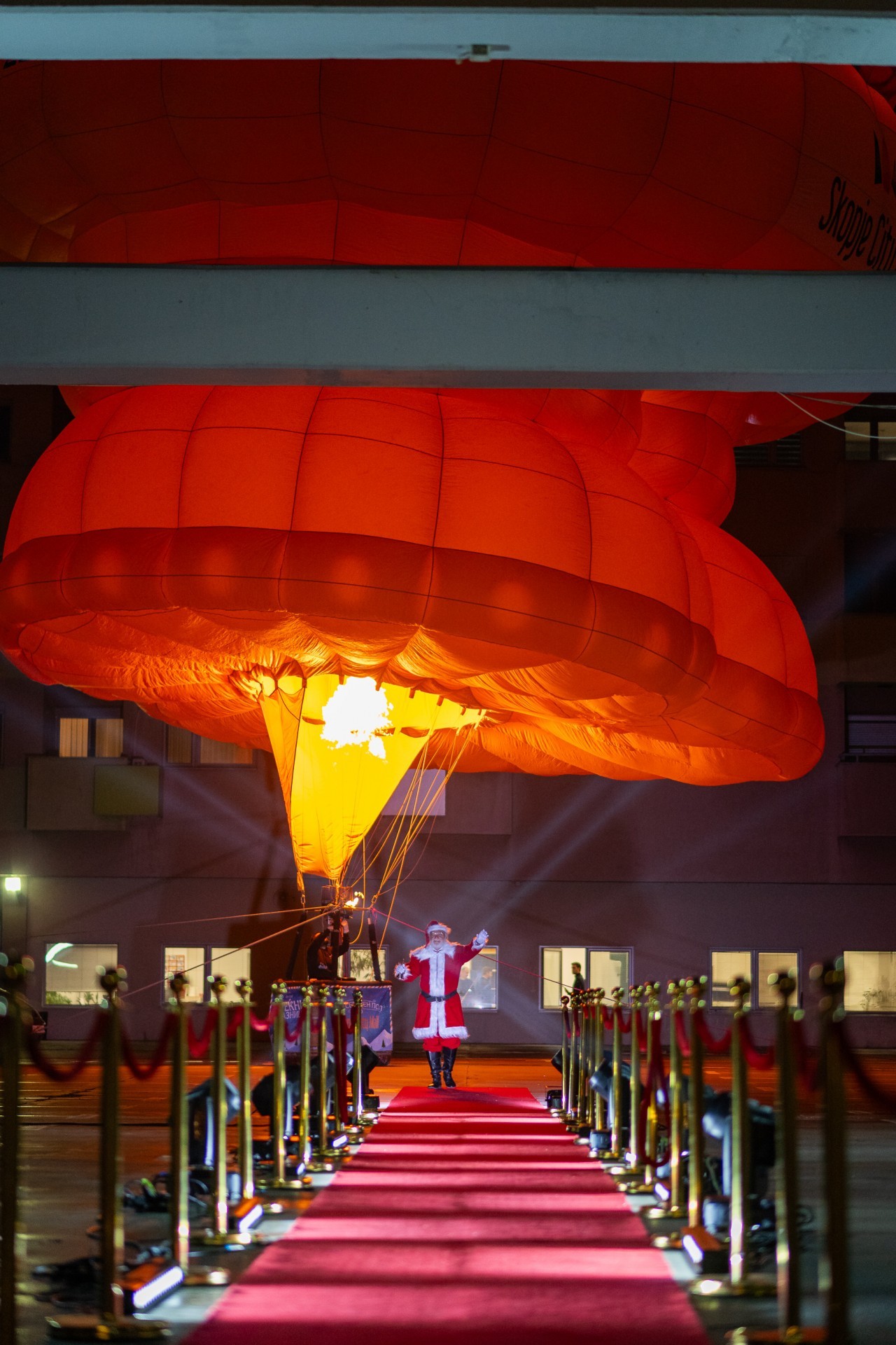 Од Северниот Пол директно на кровот на SkopjeCityMall. Вчерашниот ден донесе вистински спектакл. Токму во моментот кога се запалија светлата на новогодишната елка и молот блесна во празничен сјај, посетителите беа изненадени од поглед што ретко се гледа: огромен балон на топол воздух кој се појави над градот, а во него, Дедо Мраз.