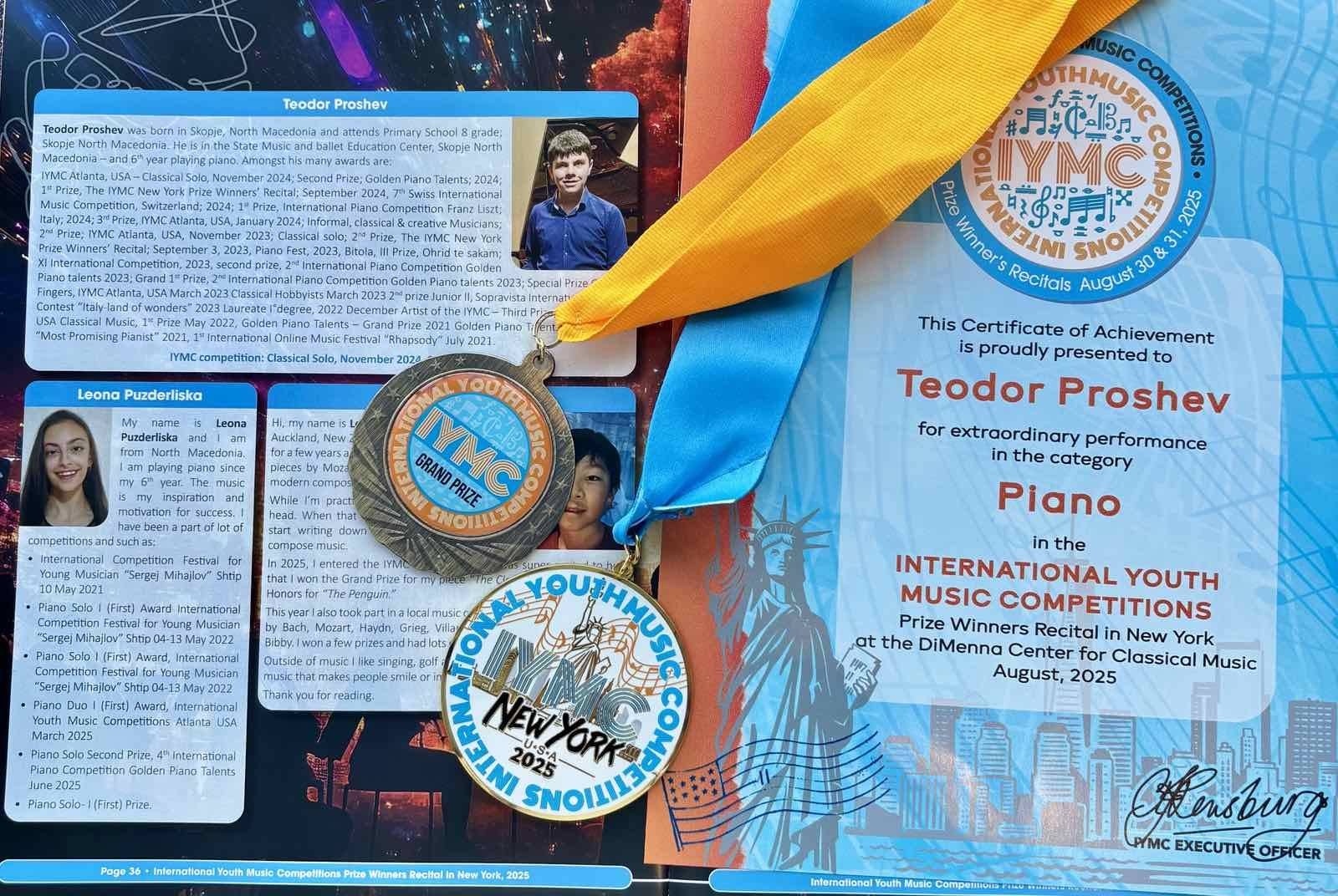 ПРВА НАГРАДА ЗА НАШИТЕ МЛАДИ ПИЈАНИСТИ СРНА ЗАФИРОВИЌ И ТЕОДОР ПРОШЕВ ВО ЊУЈОРК, ВО ПРЕСТИЖНИОТ ДИМЕНА ЦЕНТАР ЗА КЛАСИЧНА МУЗИКА ВО СРЦЕТО НА МЕНХЕТЕН